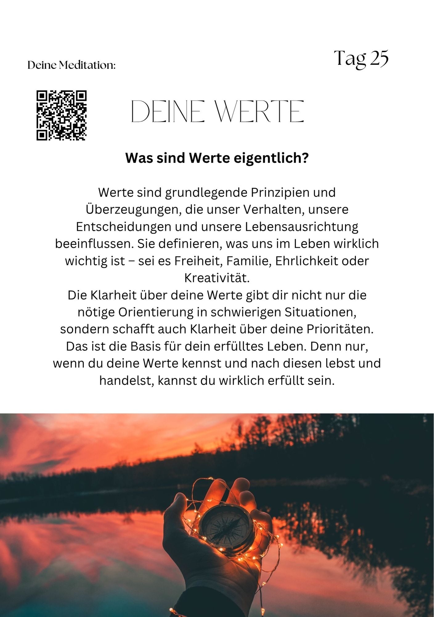 Und zusätzlich erwarten dich QR Codes zu thematisch passenden Meditationsaudios im Journal.